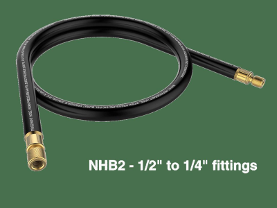 Navac, NHB2, Evacuation Hoses, 1/2 to 1/4 in Nominal, 1/2 in ID, 6 ft Length, 640 psi Working, Black