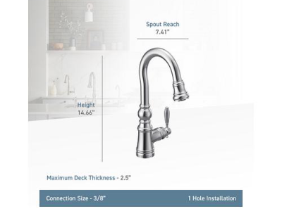 Moen® S53004SRS S53004 Weymouth™ Kitchen Faucet, 1.5 gpm Flow Rate, Spot Resist Stainless, 1 Handles, 1 Faucet Holes, Domestic