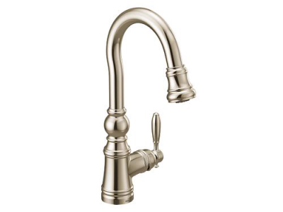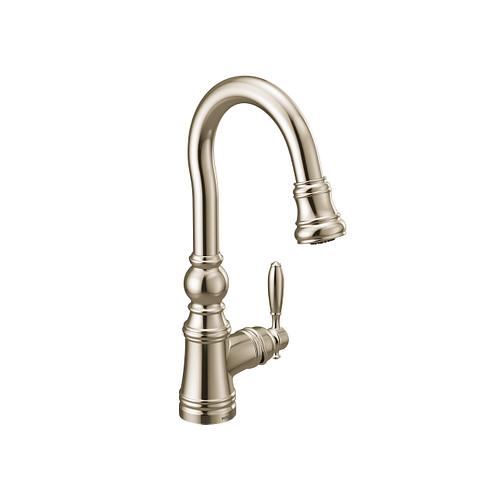 Moen® S53004NL S53004 Weymouth™ Kitchen Faucet, 1.5 gpm Flow Rate, Polished Nickel, 1 Handles, 1 Faucet Holes, Domestic