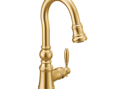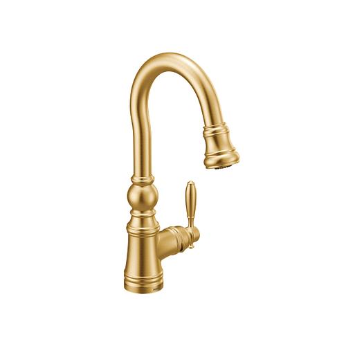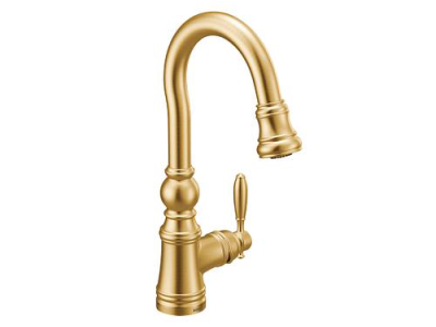 Moen® S53004BG S53004 Weymouth™ Kitchen Faucet, 1.5 gpm Flow Rate, Brushed Gold, 1 Handles, 1 Faucet Holes, Domestic