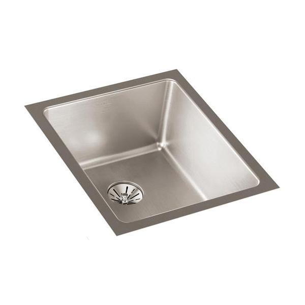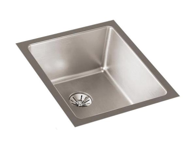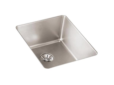 Elkay®, ELUHH1316TPD, Kitchen Sink, Lustertone Iconix™ Collection, Rectangle Shape, 13-1/2 in Bowl Length, 16 in Bowl Width, 8 in Bowl Depth, 3-3/8 in Drain Opening, 1 Bowls, 16 in L x 18-1/2 in W x 8 in H Overall, Undermount Mounting, 304 Stainless Steel, Luminous Satin, Domestic