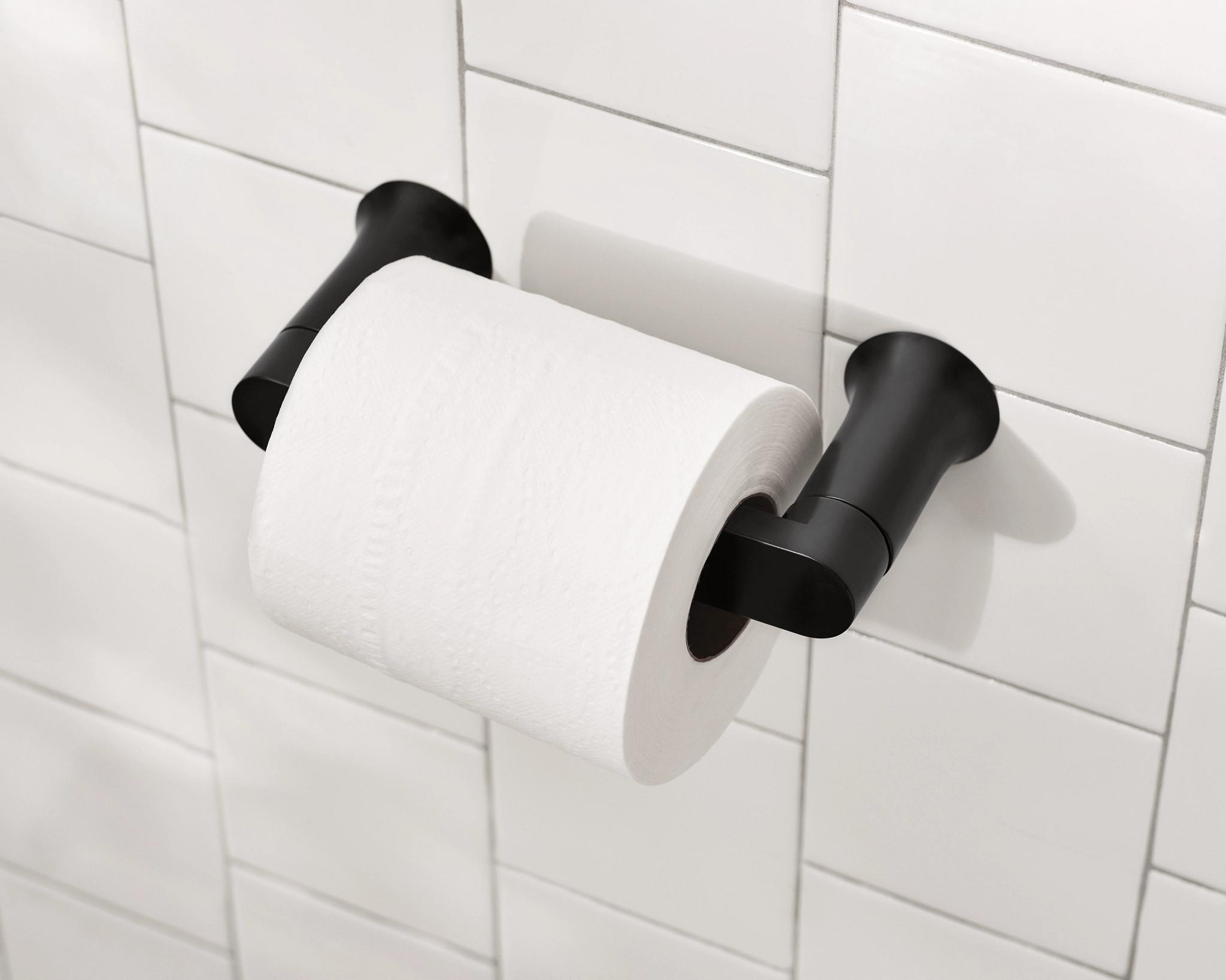 Moen®, BH3808BL, Paper Holder, Pivoting, Genta™ Collection, 1.77 in Height, 7-53/6 in Length, 7.83 in Width, 3-1/4 in Depth, Wall Mounting, Zinc, Matte Black, Import