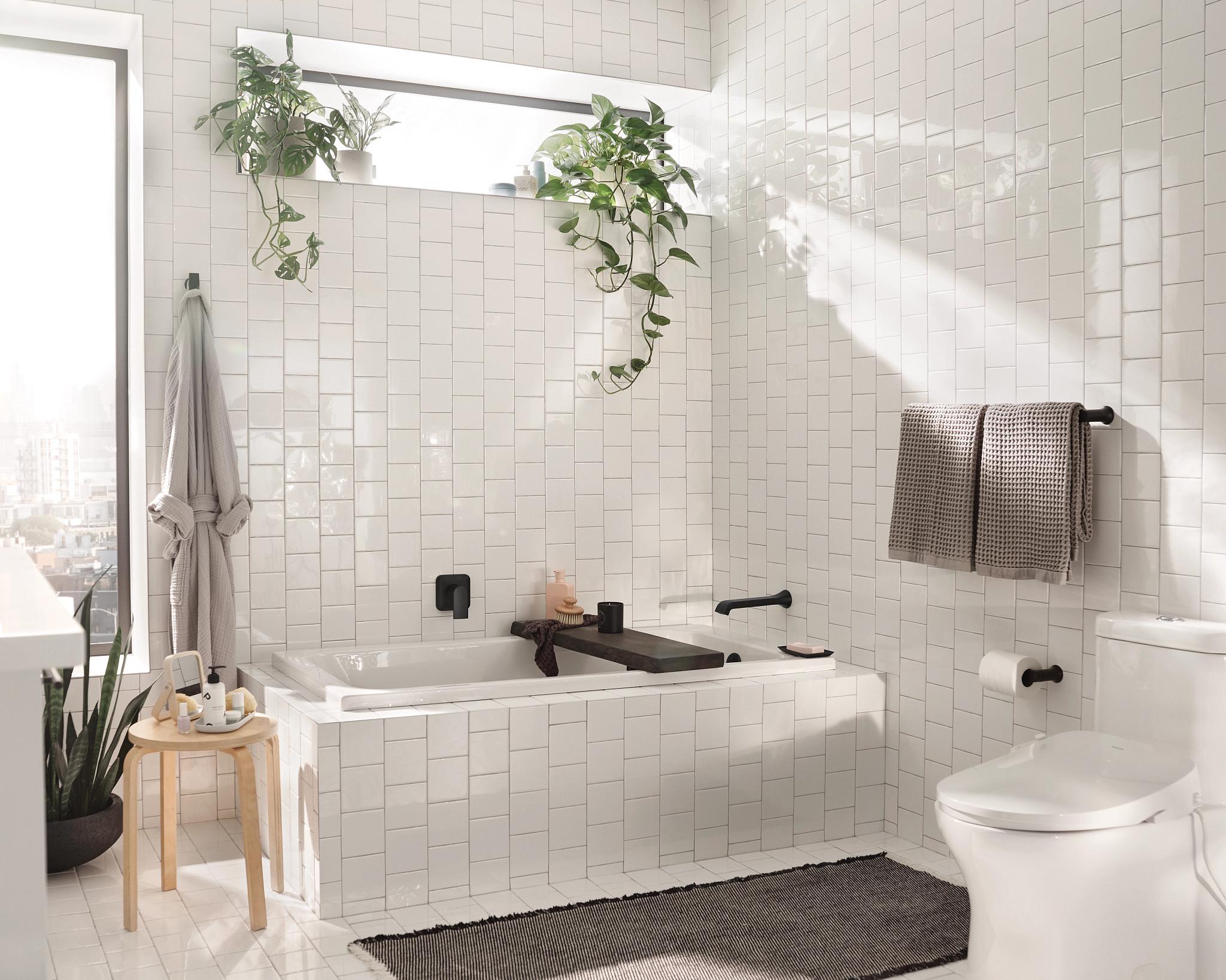 The Genta™ bath suite boasts contemporary, curved edges for an appealing, yet substantial style that brings a sleek feeling to the bathroom. Genta™ is available in Moen®'s exclusive Spot Resist™ Brushed Nickel finish, which resists fingerprints and water spots to maintain the fixture's brilliance and minimize cleaning time.