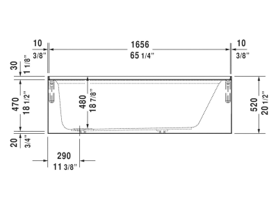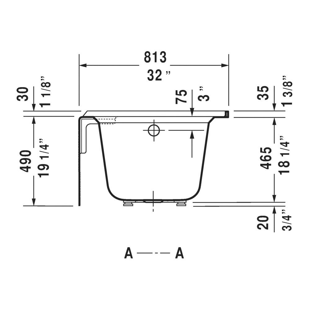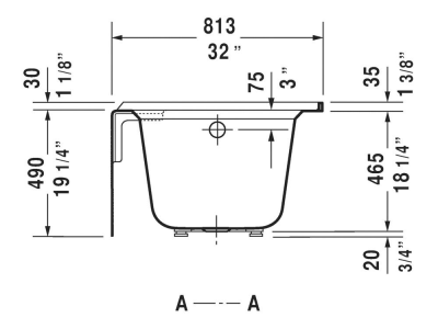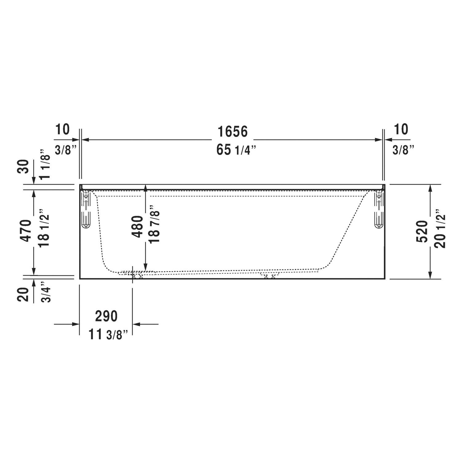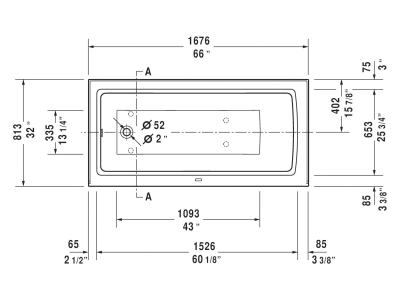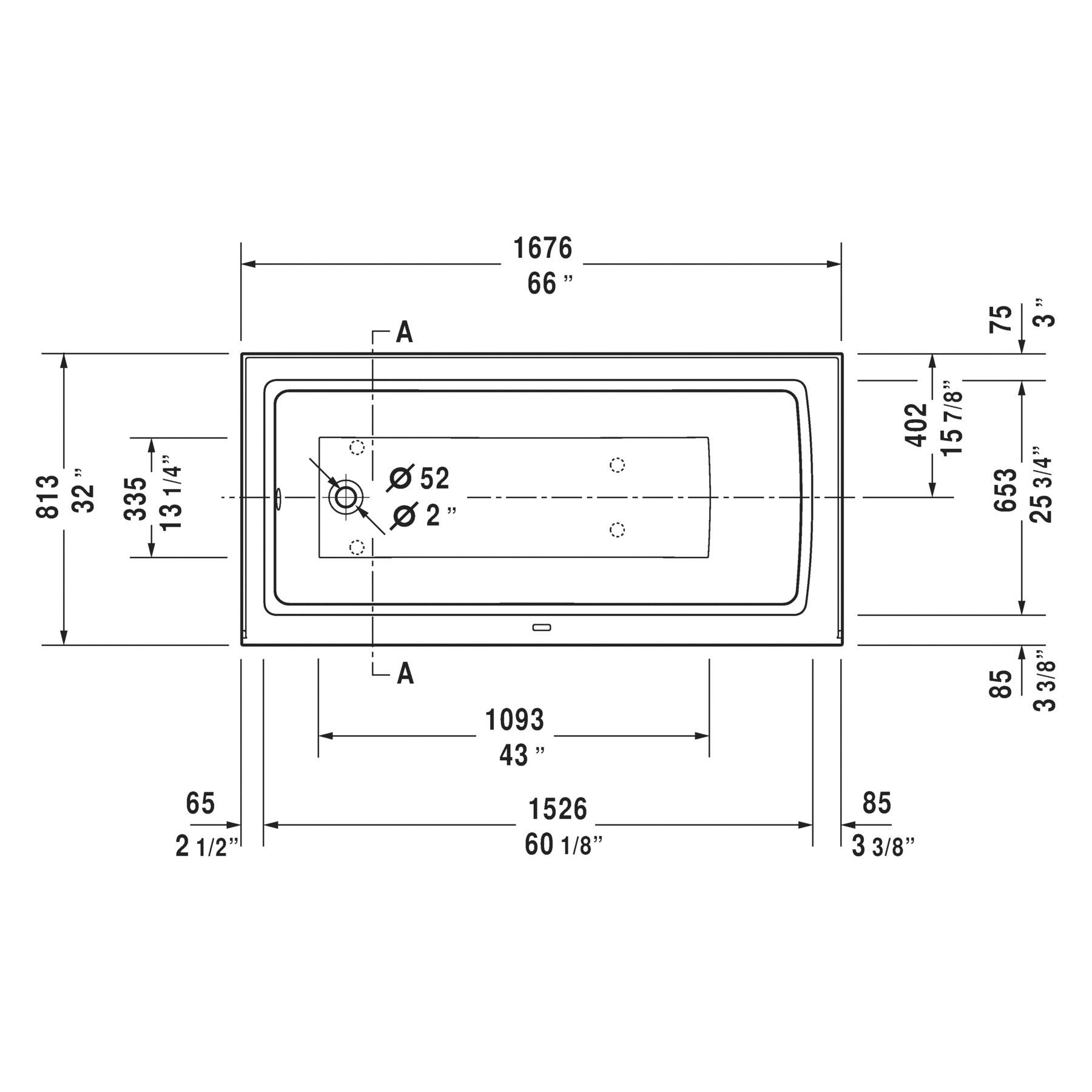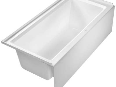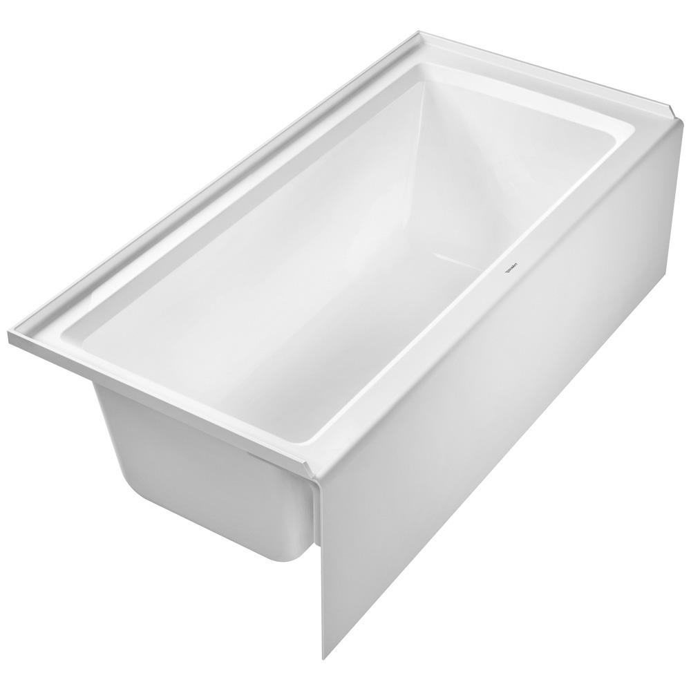 DURAVIT Bathtub, Series: 700408, Architec Collection, Soaking Bath Therapy, Rectangle Shape, 66 in Length, 32 in Width, 18-7/8 in Height, 18-7/8 in Tub Depth, 39.4 gal Water, Left Drain Location, 2 in Dia Drain, 43 in L x 13-1/4 in W Bathing Well, 60-1/8 in L x 25-3/4 in W Opening, Drop-In Mounting, Acrylic, White, Domestic/Import: Import