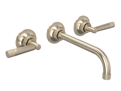 Rohl®, MB2030LMSTNTO-2, Bathroom Faucet, Transitional, Graceline Collection, 1.2 gpm Flow Rate, C Spout, 8-7/8 in Spout Reach, Lever Handle, 3 Faucet Holes, Function: Traditional, Wall Mounting, Brass, Satin Nickel