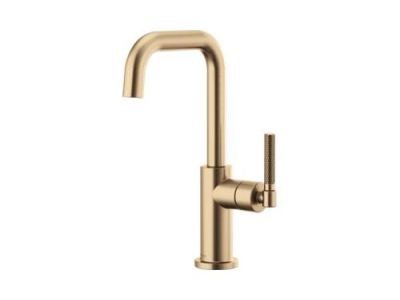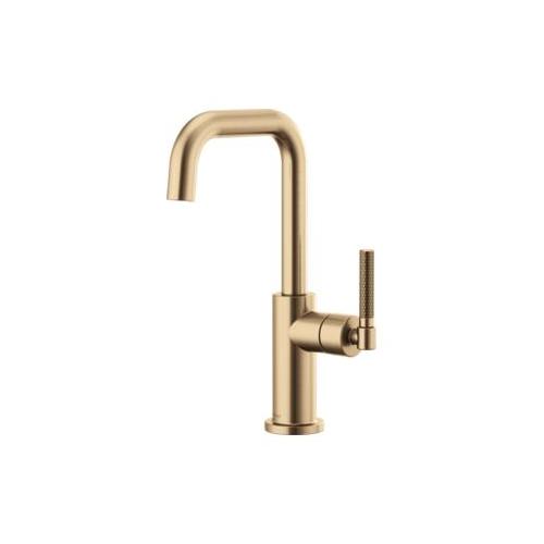 Brizo® Bar Faucet, Litze™, 1.8 gpm, Square Spout, 5-7/8 in Spout Reach, 11-5/16 in Spout Height, Knurled Lever, 1 Handles, 1 Faucet Holes, 1-1/8 to 1-1/2 in Faucet Hole, 1/2-14, NPSM, 3 in Maximum Deck Thickness, Deck Mount, Ceramic Disc Valve/Cartridge, Solid Brass, Luxe Gold, Import