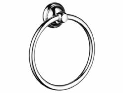 Hansgrohe C Towel Ring, Wall Mount, 7 in Ring Diameter, 2 in Overall Depth, 2-1/2 in Dia Base, Solid Brass, Polished Chrome