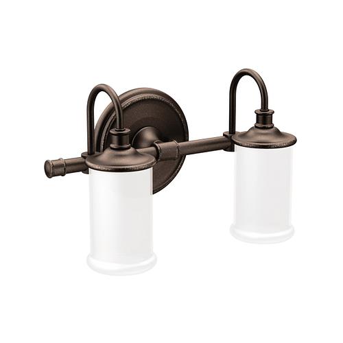 Moen®, YB6462ORB, Bath Light, 110 V AC, 100 W Lamp, Medium Lamp Base, 2 Lamps, Bell Shade, Metal Housing Material, Oil Rubbed Bronze Housing Finish, 14-1/4 in W x 8-5/8 in D x 7 in H Dimensions