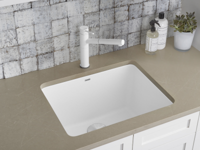 Blanco Laundry Sink, LIVEN™ SILGRANIT® Collection, Rectangle Shape, 22-1/4 in W x 12 in D x 17 in H Bowl, 3-1/2 in Drain Opening, 1 Faucet Holes, 1 Basins, 25 in W x 22 in H Overall, Drop-In/Undermount Mounting, Granite, White
