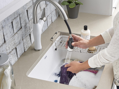 Every space deserves to be beautiful. BLANCO’s LIVEN laundry sink is specifically designed to address the unique needs of cleaning beyond the kitchen. Perfect for the laundry or mudroom, the extra-deep 12” bowl depth is ideal for soaking and scrubbing. Made of SILGRANIT, LIVEN sinks can handle the toughest of cleaning jobs. Strong and beautiful, SILGRANIT sinks are available in a range of nature-inspired colors that effortlessly complement the latest design trends. Combine the LIVEN laundry sink with a BLANCO faucet and accessories to create a BLANCO UNIT; a seamlessly integrated solution designed to transform chores into joyful experiences. Everything you need, all in one place.