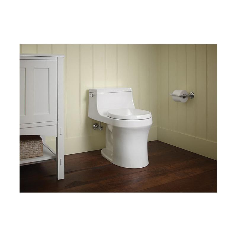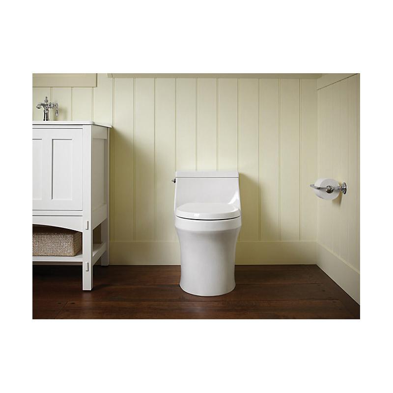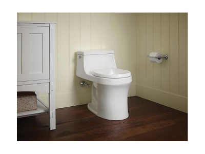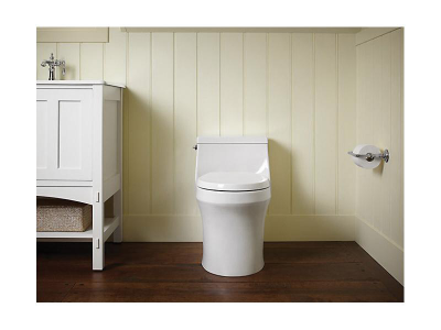 With sleek curves and a low-profile silhouette, the KOHLER® San Souci one-piece toilet makes a strong design statement. A compact tank curves seamlessly into a round-front bowl for a space-saving profile. A 1.28-gallon flush provides significant water savings of up to 16,500 gallons per year, compared to a 3.5-gallon one-piece round-front toilet, without sacrificing performance. This toilet comes with a soft-close seat featuring innovative technology that prevents the seat from slamming and simplifies both cleaning and installation.