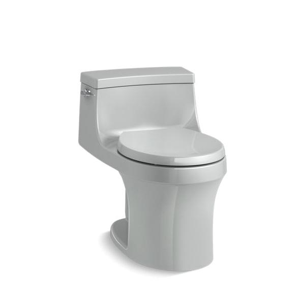 Kohler® Toilet, 1-Piece, San Souci® Collection, 1.28 gpf Flush, Round Bowl, 15-1/4 in Rim Height, 12 in Rough-In, 2-1/8 in Trapway, Floor Mounting, AquaPiston® Flushing System, 3 in Flush Valve, 11-7/8 in W Bowl, 16-3/4 in W x 25-5/8 in D x 24-1/4 in H Overall, Vitreous China, Ice Gray™