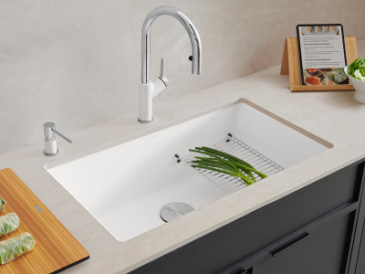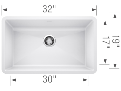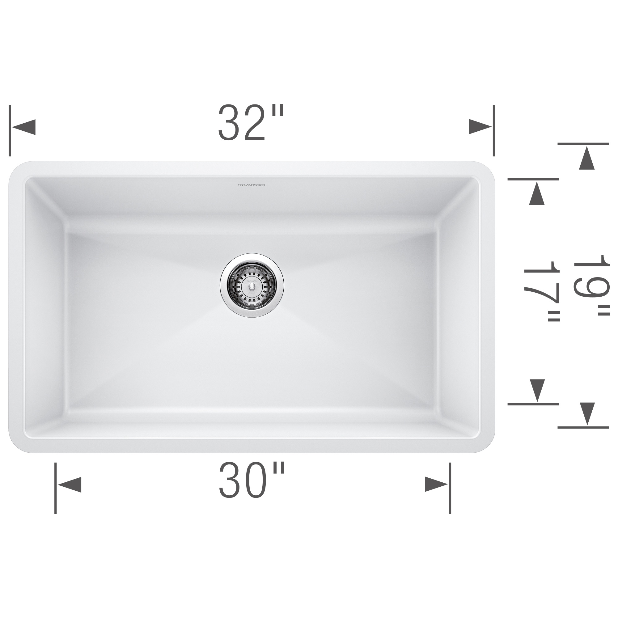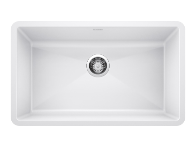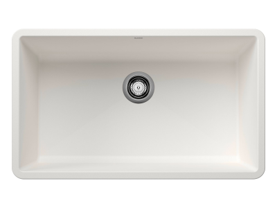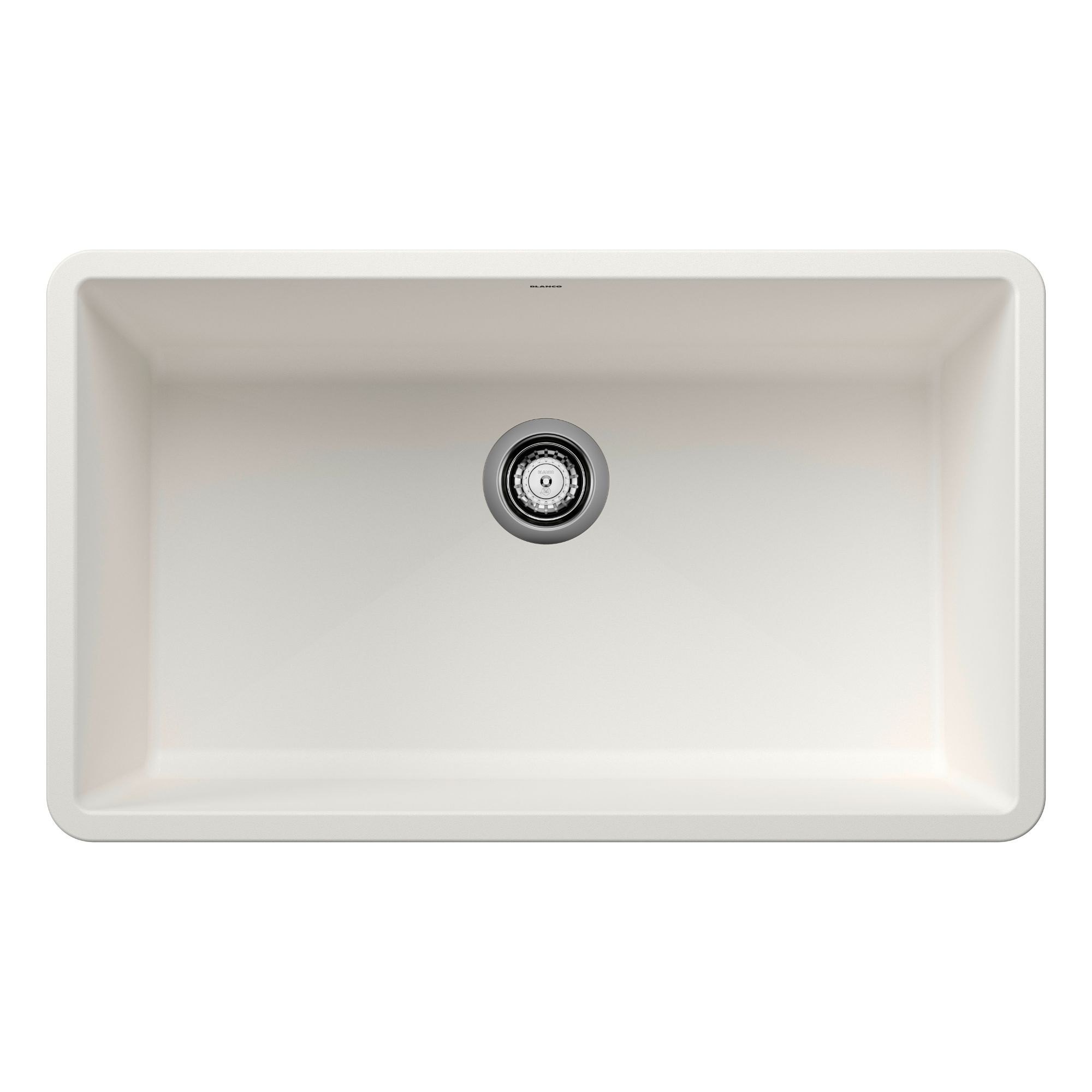 Blanco, 440150, Kitchen Sink, PRECIS™ SILGRANIT® II Collection, Rectangle Shape, 30 in Bowl Length, 17 in Bowl Width, 9-1/2 in Bowl Depth, 3-1/2 in Drain Opening, 1 Bowls, 32 in L x 19 in W Overall, Undermount Mounting, Solid Granite, White, Import