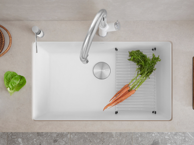 The PRECIS SUPER SINGLE UNDERMOUNT KITCHEN SINK offers clean lines and a spacious single bowl design. One of BLANCO's most popular sinks, the PRECIS SUPER SINGLE features an extra-large bowl, so kitchen items such as baking sheets, pots and pans can be easily maneuvered. Made of SILGRANIT®, PRECIS kitchen sinks are engineered to withstand heavy cookware and hot bakeware. Silgranit sinks are not only strong but also beautiful, available in a range of nature-inspired colors that effortlessly complement the latest kitchen trends. Combine the PRECIS sink with a BLANCO faucet and accessories to create a BLANCO UNIT; a seamlessly integrated kitchen solution designed to transform kitchen chores into joyful experiences. Everything you need to drink, prep and clean, all in one place.