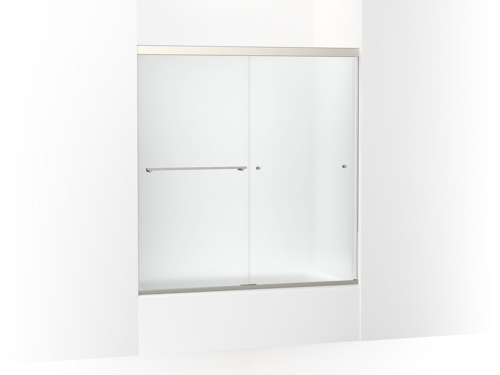 Kohler® 707002-D3-BNK Revel™ Sliding Bath Door, Frameless Frame, Frosted Tempered Glass, Anodized Brushed Nickel, 5/16 in THK Glass, 52-1/16 in H Opening, 56-5/8 to 59-5/8 in W Opening
