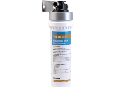 Mountain Plumbing Products, MT3K-HF, Water Filtration System, Full Flow, 1.67 gpm Flow Rate, Carbon Filter, 3000 gal Capacity, 35 to 100 deg F, 10 to 125 psi Working, For Use With: Clean/Drinking/Cooking and Even Face Washing When You Install in Your Bathroom, 13-1/2 in Height