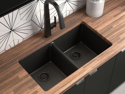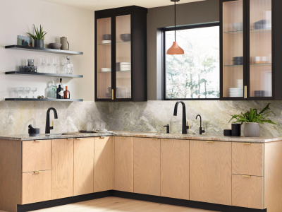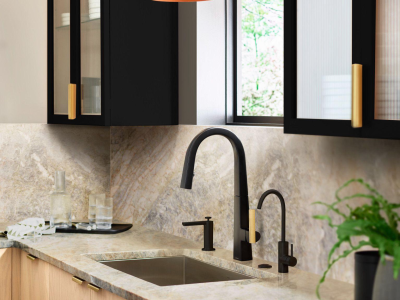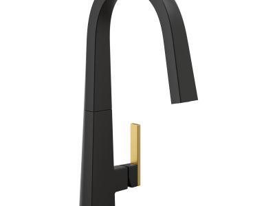 The Nio kitchen faucet collection features a unique recessed pulldown wand for a smooth, continuous aesthetic. The architectural stature balances perfectly with a soft modern style. For customization, a secondary finish handle option is included in the box.