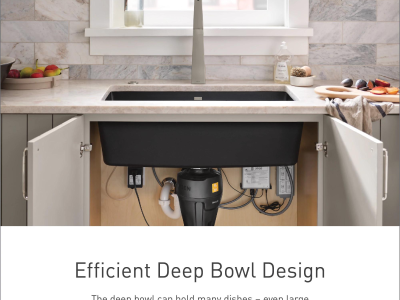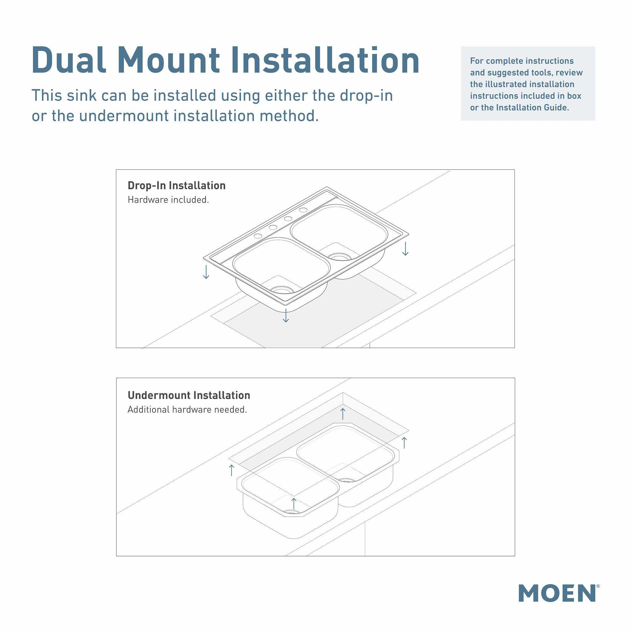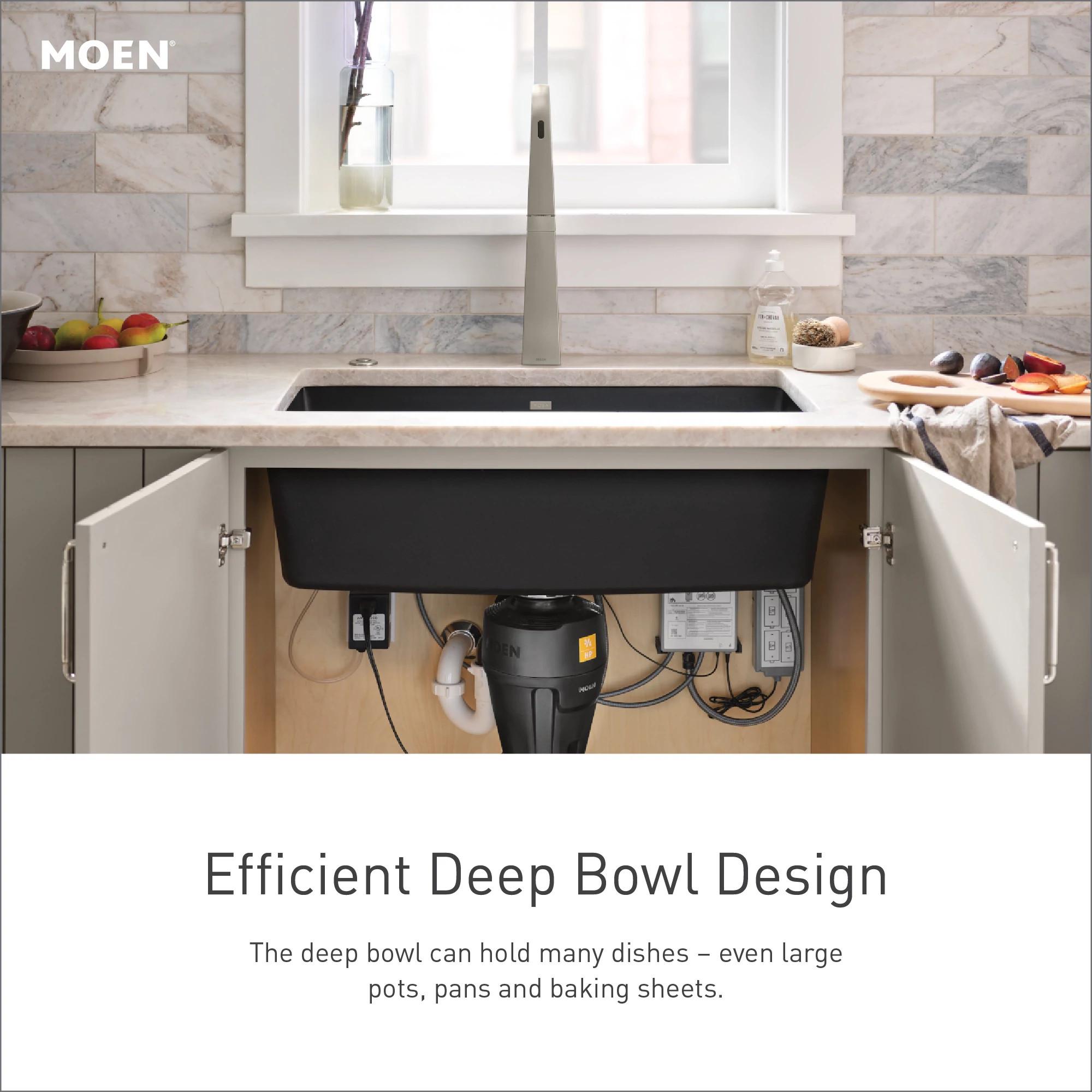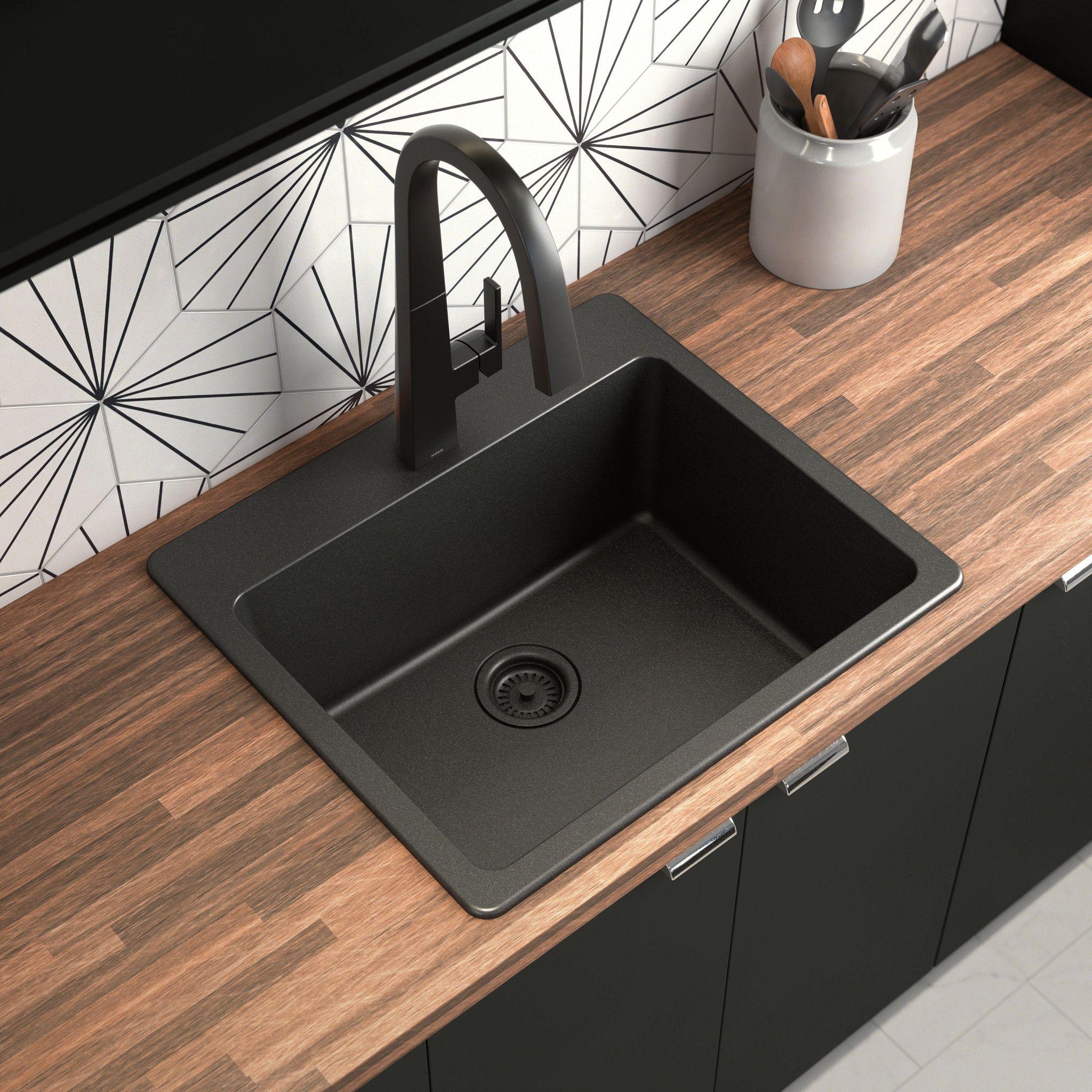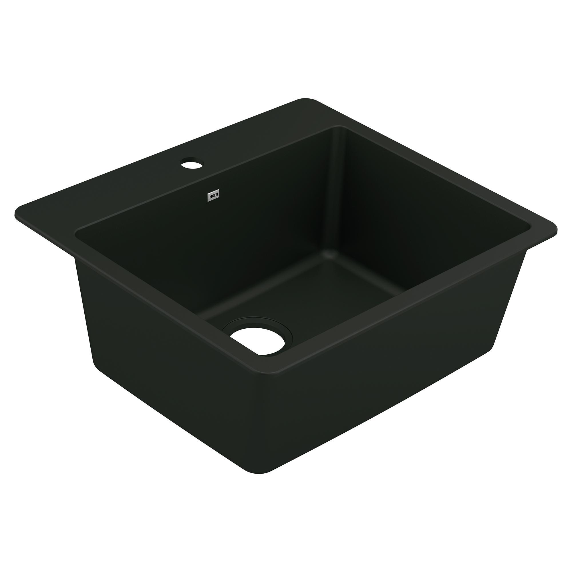 Moen®, GGB3019B, Sink, 22-5/16 in L x 16-7/16 in W x 9-1/2 in D Bowl, 3-1/2 in Drain Opening, 1 Basins, 25 in L x 22 in W x 9-1/2 in D Overall, Dual Mounting, Granite, Black, Import