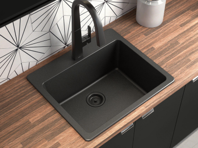Moen® GGB3019B Sink, 25 in L x 22 in W x 9-1/2 in D, Dual Mounting, Granite, Black, Import