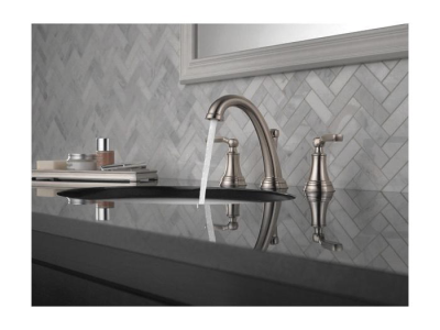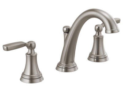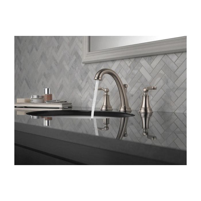 DELTA®, 3532LF-SSMPU, Widespread Bathroom Faucet, Series: 3532, Woodhurst™ Collection, 1.2 gpm Flow Rate, 4-1/2 to 16 in Center Distance, Rigid Spout, 5-1/4 in Spout Reach, 4-7/16 in Spout Height, Lever Handle, 2 Handles, Metal Pop-Up Drain, 3 Faucet Holes, 1/2-14 Connection, NPSM Connection, 1-3/16 in Maximum Deck Thickness, Deck Mounting, 6 in H Dimensions, Stainless, Import