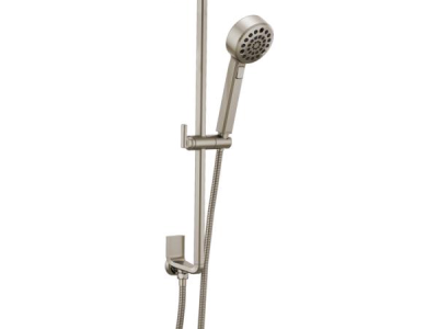 Brizo® Hand Shower, Multi-Function, Levoir™ Collection, 3-15/16 in Shower Head Diameter, 1.75 gpm Flow Rate, 60 to 82 in Hose Length, Full Body/H2OKinetic®/Massage/Pause Spray, 80 psi Pressure, 1/2-14 NPSM Connection, Metal Hose, Luxe Nickel, 3.75 in L x 23.78 in H Dimensions, With Slide Bar: Yes, Import