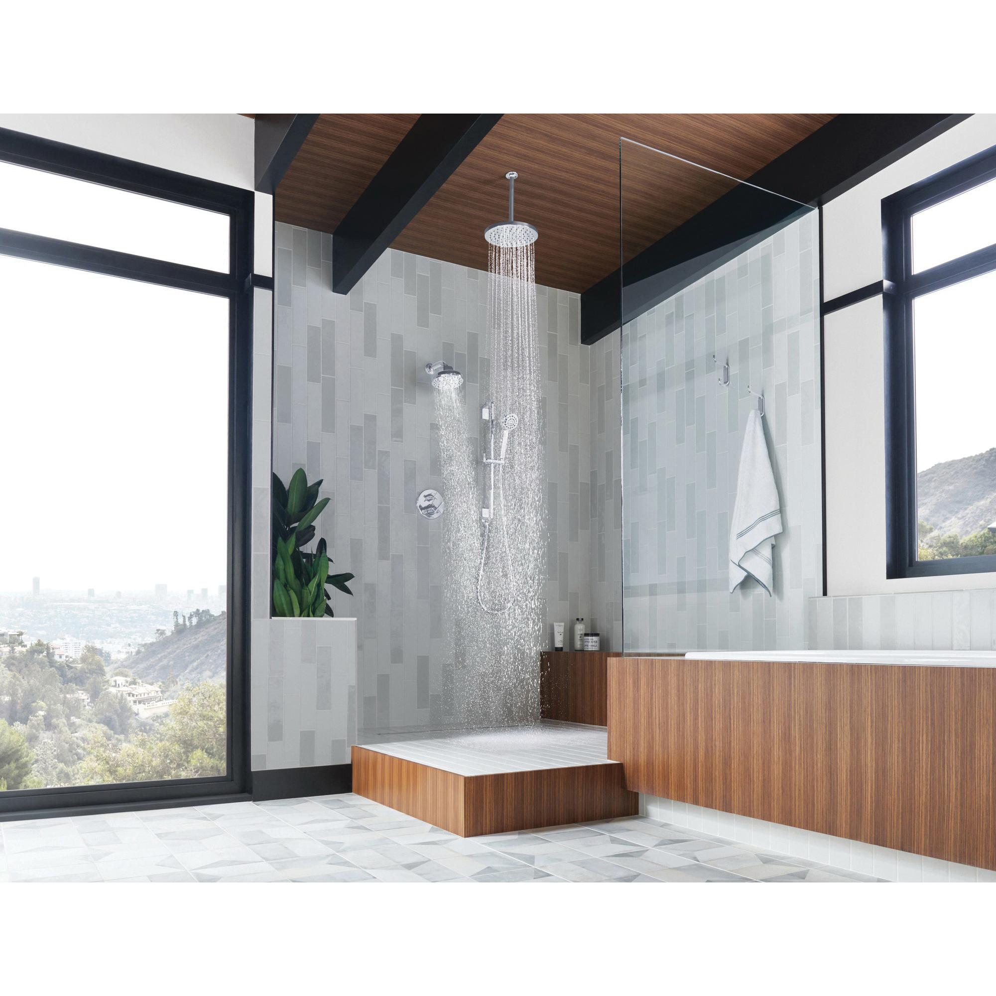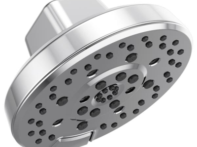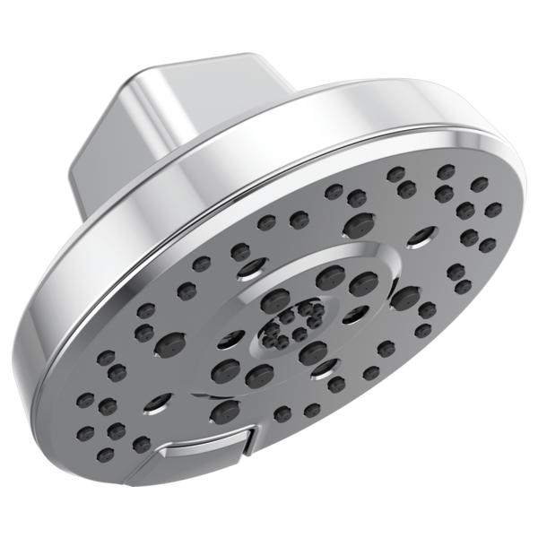 Brizo® Showerhead, Levoir™ Collection, 1.75 gpm Minimum, 1/2-14 Female NPSM Connection, Round Shape, 4 Sprays, Spray Pattern: Full Body/H2OKinetic®/Massage/Pause, 80 psi Pressure, 6-7/8 in Dia Head, 4-5/8 in Overall Height, Solid Brass, Polished Chrome, Import