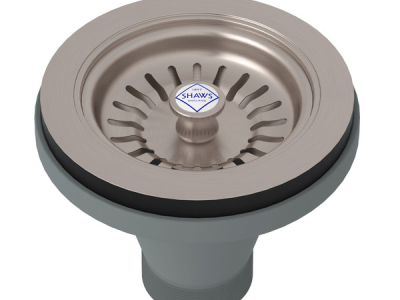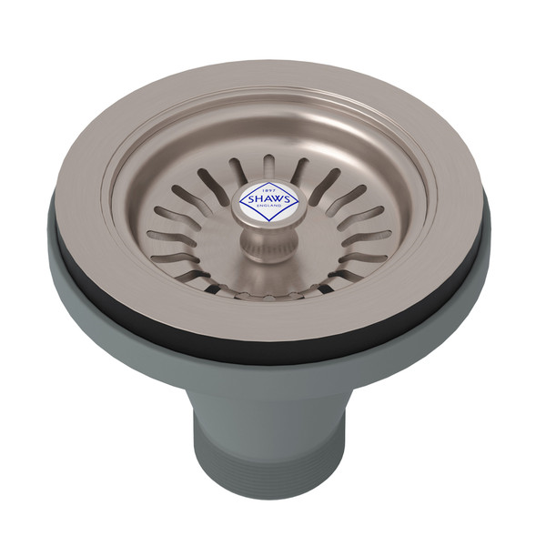 Rohl SHW734STN Manual Basket Strainer with Logo Branded White Porcelain Pull Knob - Satin Nickel