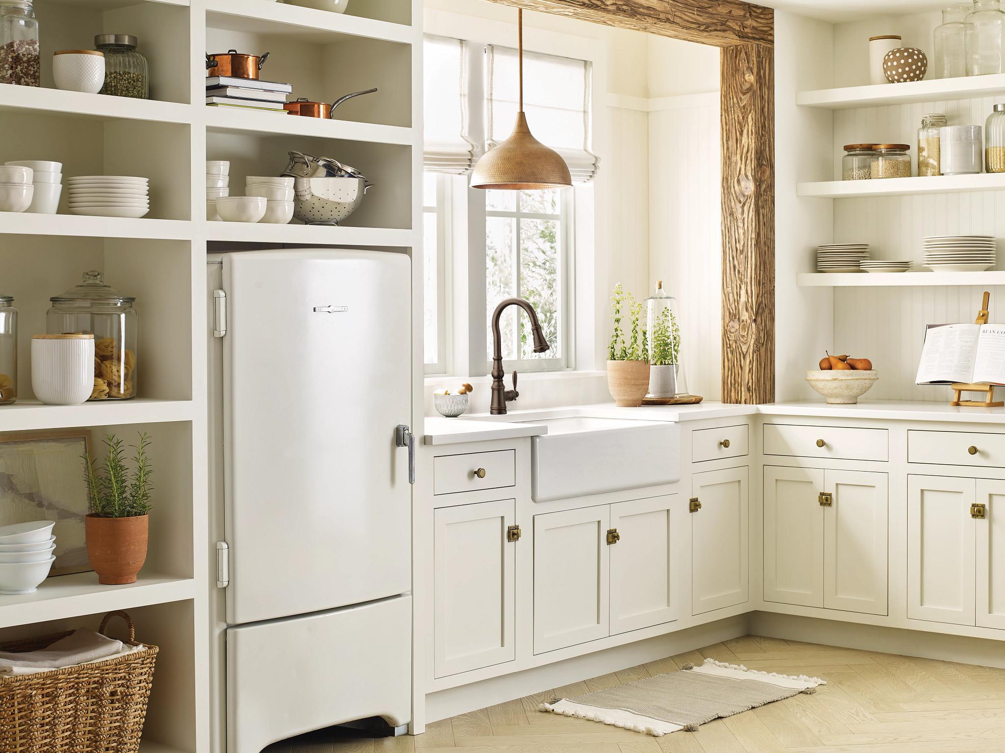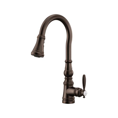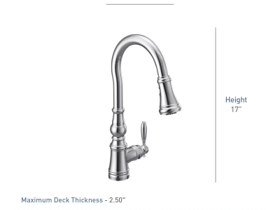 Weymouth's gracious design details and distinctive Victorian finishing touches present a sense of uncommon luxury for today's traditional kitchens. Signature styling elements include a decorative top finial and a refined shepherd's spout. Accents on the Weymouth Single-Handle Kitchen Faucet include porcelain inlays that feature Euro-influenced decorative script to create a vintage, eye-catching statement in your kitchen.
