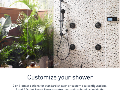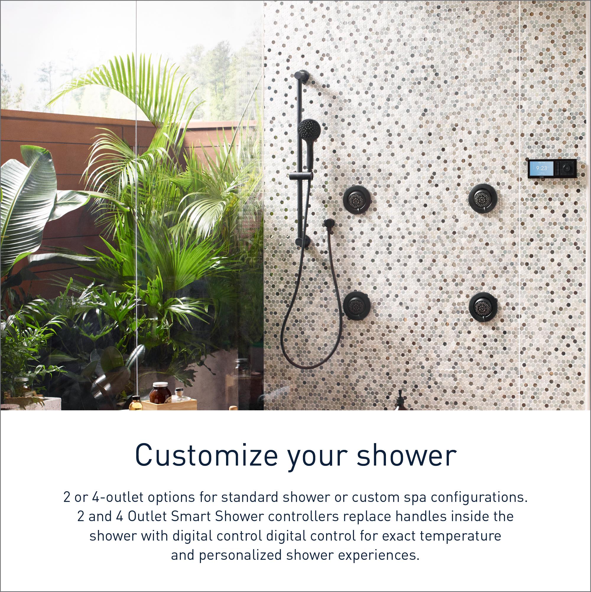 The Smart Shower is a Wi-Fi enabled digital shower that offers mobile connectivity and unmatched personalization, providing countless ways to create your ideal showering experience. This smart shower allows you to activate your shower in 3 different ways—voice controlled through a smart speaker, the Moen Smart Water App and the in-shower controller. Within the Moen Smart Water App, you can create up to 12 personalized presets including name, greeting, outlets used, water temperature, shower timer and notifications, so you have a perfect shower experience every time.
