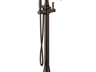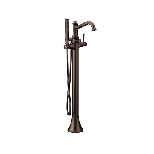 Moen®, 9025ORB, Tub Filler Faucet, Floor Mount, Belfield™ Collection, 9-3/4 in Spout Reach, 34 to 37 in Spout Height, 59 in L Hose, Lever Handle, 1 Handles, 1 Faucet Holes, 1/2 in Connection, CC/NPT Connection, 1 Spray Functions, Hand Shower: Yes, Integral Dual Check Valve, 37 to 40 in H Dimensions, Metal, Oil Rubbed Bronze, Domestic, Commercial Commercial/Residential