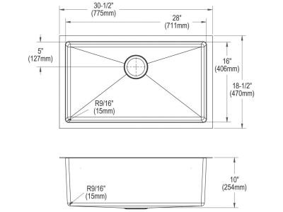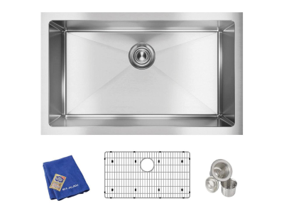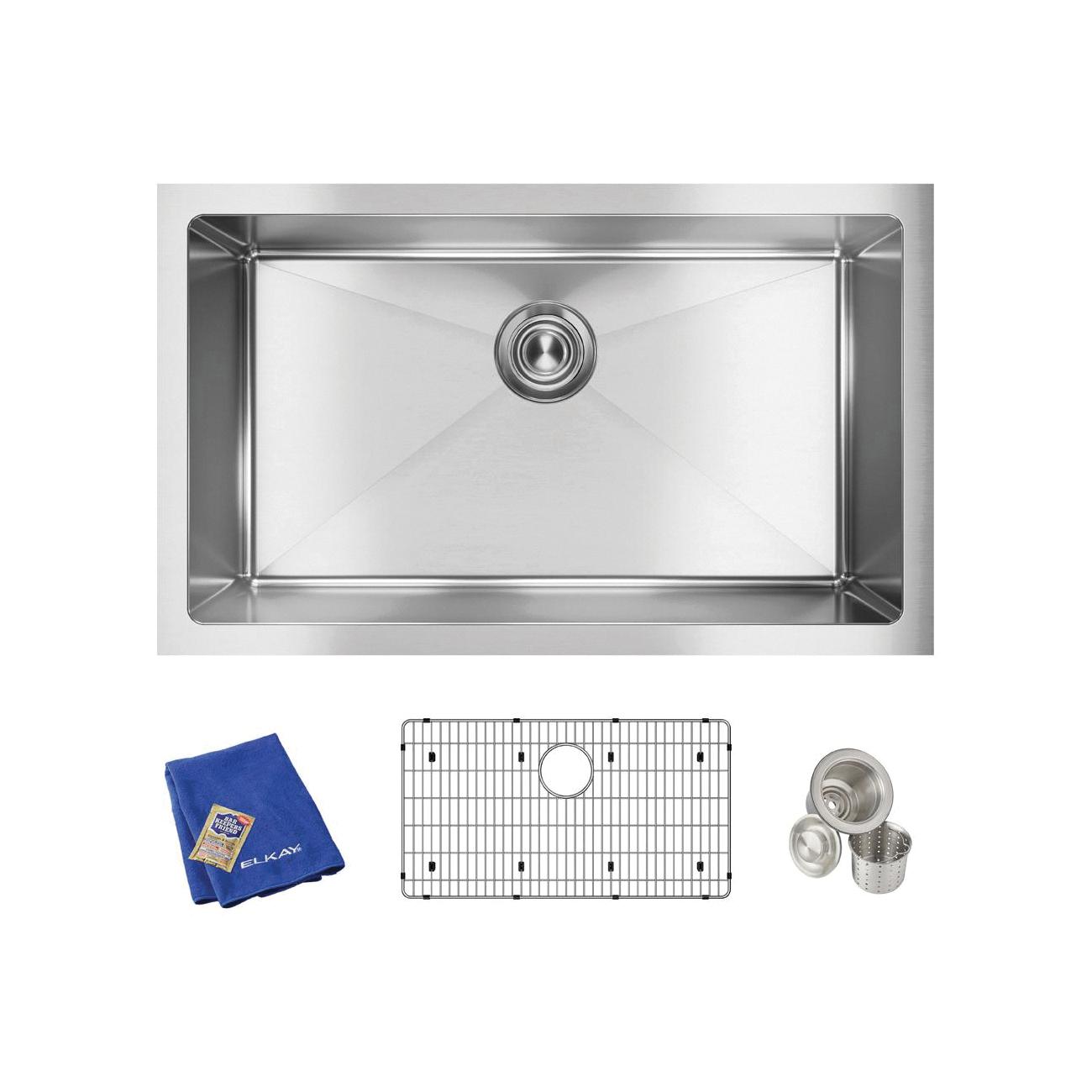 Elkay®, EFRU281610TC, Kitchen Sink Kit, Transitional, Crosstown® Collection, Rectangle Shape, 28 in Bowl Length, 16 in Bowl Width, 10 in Bowl Depth, 3-1/2 in Drain Opening, 1 Bowls, 30-1/2 in L x 18-1/2 in W x 10 in H Overall, Undermount Mounting, 16 ga 304 Stainless Steel, Polished Satin, Import