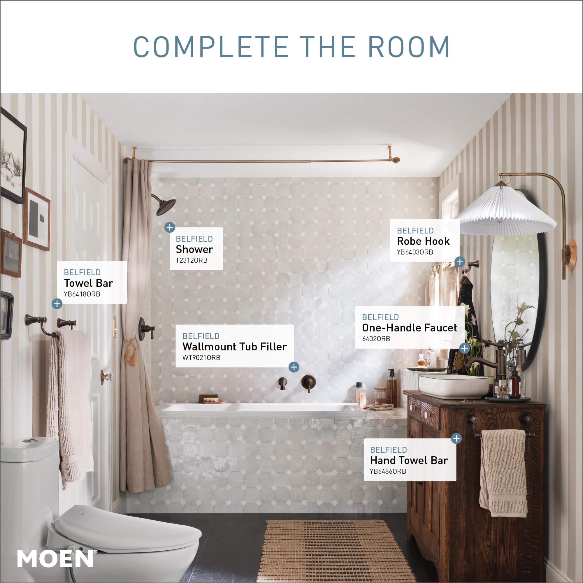 Moen®, YB6418ORB, Towel Bar, Series: YB6418, Belfield™ Collection, 18 in Bar Length, 5.2 in Overall Depth, 3 in Overall Height, Aluminum, Oil Rubbed Bronze, Import
