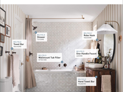Williamsburg era details and intricate design cues give each Belfield™ faucet a timeless look, while multiple finish options add a distinctly personalized touch to the traditional styling.