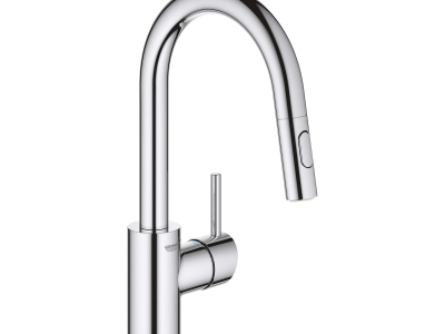 The GROHE Concetto™ dual spray pull-out kitchen faucet is sleek, sophisticated and engineered for superior performance. Convenient pull-out spray easily toggles between regular water flow and spray for maximum versatility for every kitchen task. Meticulously crafted with a high, swivel spout for ease when filling pots and lever handle that offers precise control of water pressure and temperature. Available in durable GROHE StarLight® finishes for lasting beauty.