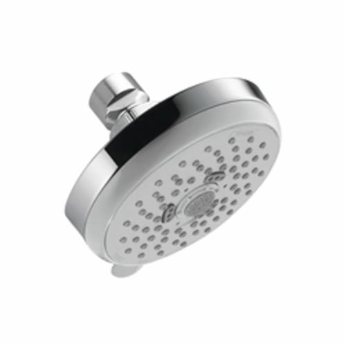 Hansgrohe 3-Jet Shower Head, Croma E 100 Collection, 4 in Diameter, 3 Spray, 2.5 gpm Maximum, Spray Pattern: Full/Pulsating Massage/Intense Turbo, Wall Mounting, Brass, Polished Chrome, Import