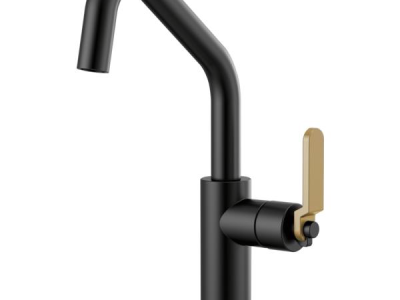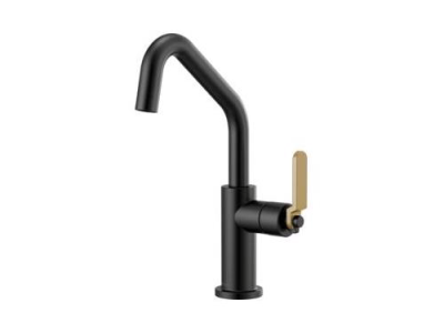 Brizo® Bar Faucet, Litze™, 1.8 gpm, Angled Spout, 6 in Spout Reach, 11-1/2 in Spout Height, Industrial Lever, 1 Handles, 1 Faucet Holes, 1-1/8 to 1-1/2 in Faucet Hole, 1/2-14, NPSM, 3 in Maximum Deck Thickness, Deck Mount, Ceramic Disc Valve/Cartridge, Solid Brass, Matte Black/luxe Gold, Import