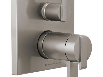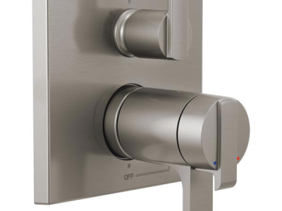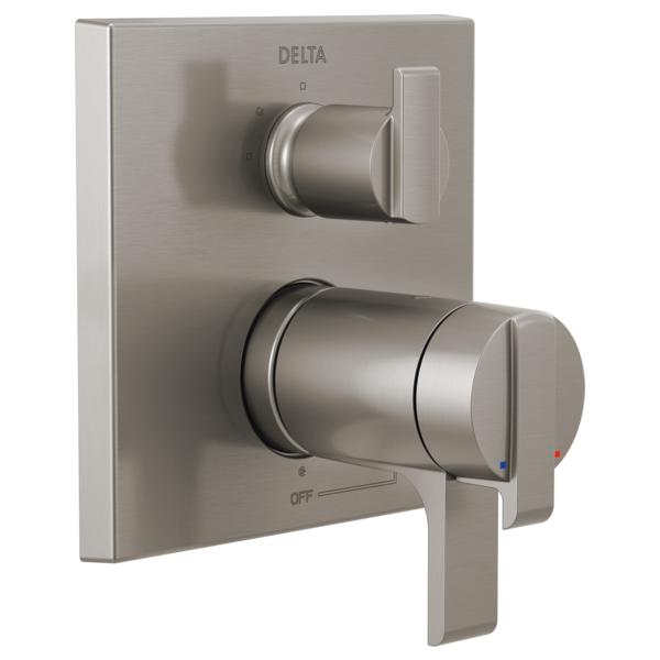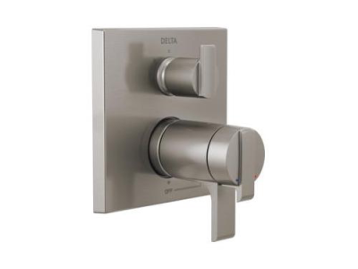 The Delta® MultiChoice® Integrated Shower Diverter consolidates custom shower design with its consumer-preferred streamlined style eliminating the need for an additional diverter valve. The angular modern style is boldly contemporary, featuring crisp lines for an upscale feel. With three popular style choices to coordinate with any bathroom décor, it provides you the flexibility to select the type of custom shower functionality you prefer. With the MultiChoice® Universal system, you have the freedom to upgrade style and functionality later. And, because there’s no need to alter plumbing behind the wall, you save time, effort and money on future renovation updates. Delta's dual-function thermostatic valve cartridge keeps water temperature consistent (within 3.6°) by actually measuring and monitoring the temperature of the water. Temperature can be set in order to remain consistent shower after shower.