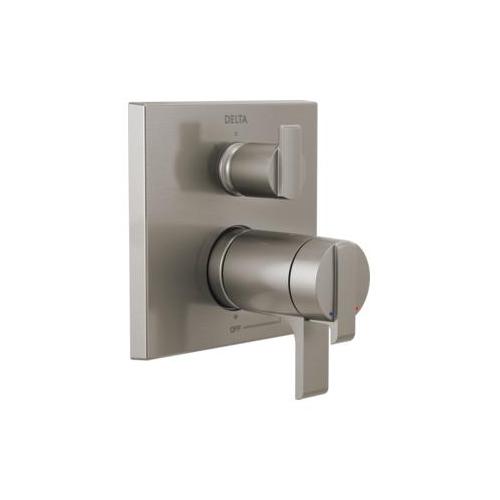 DELTA® Valve Trim, Angular Modern, Series: TempAssure® 17T, Ara® Collection, 2 Handles, Lever Handle, 6-13/16 in W Trim, Thermostatic Ceramic Cartridge, Wall Mounting, For Use With: MultiChoice® R22000 Series Universal Rough-In Valve Body, Metal, Stainless Steel