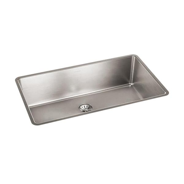 Elkay®, ELUHH3017TPD, Kitchen Sink, Lustertone Iconix™ Collection, Rectangle Shape, 30 in Bowl Length, 17 in Bowl Width, 9 in Bowl Depth, 3-3/8 in Drain Opening, 1 Bowls, 32-1/2 in L x 19-1/2 in W x 9 in H Overall, Undermount Mounting, 304 Stainless Steel, Luminous Satin, Domestic