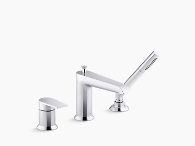 Minimalist in its design, the Hint(TM) bathroom faucet collection is a versatile style choice for traditional or contemporary environments. Coordinate with KOHLER(R) Pitch(TM) showering components, and create a space that will look beautiful for years to come. This deck-mount bath faucet includes a handshower to enhance your bathing options.