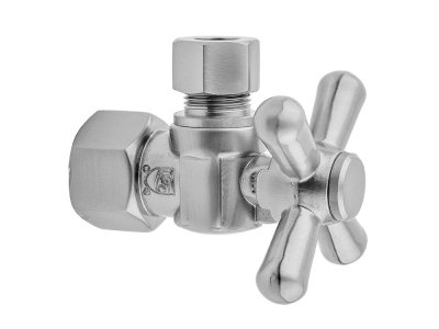 Jaclo® 616-PN 1/4 Turn Angle Pattern Contemporary/Modern Supply Ball Valve With Standard Cross Handle, 1/2 x 3/8 in Nominal, IPS x OD End Style, Solid Brass Body, Polished Nickel, Domestic