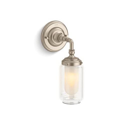Kohler® Artifacts™ Sconce, Dimmable Gooseneck, Series: 72584, 120 V, CFL Lighting Technology, 40 W Lamp, E26 Medium Lamp Base, 1 Lamp, Clear Light, Clear Frosted Glass Shade, Wall Mounting, Brass/Zinc Housing Material, Vibrant® Brushed Bronze Housing Finish, 5-1/2 in Dia x 7-1/2 in W x 13-3/16 in H Dimensions