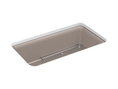 Kohler®, 8206-CM3, Kitchen Sink, Cairn® Collection, Rectangular Shape, 30-9/16 in Bowl Length, 15-3/8 in Bowl Width, 9-1/2 in Bowl Depth, 3-7/8 in Drain Opening, 1 Bowls, 33-1/2 in L x 18-5/16 in W x 10-1/8 in H Overall, Undermount Mounting, Neoroc® Composite, Matte Taupe