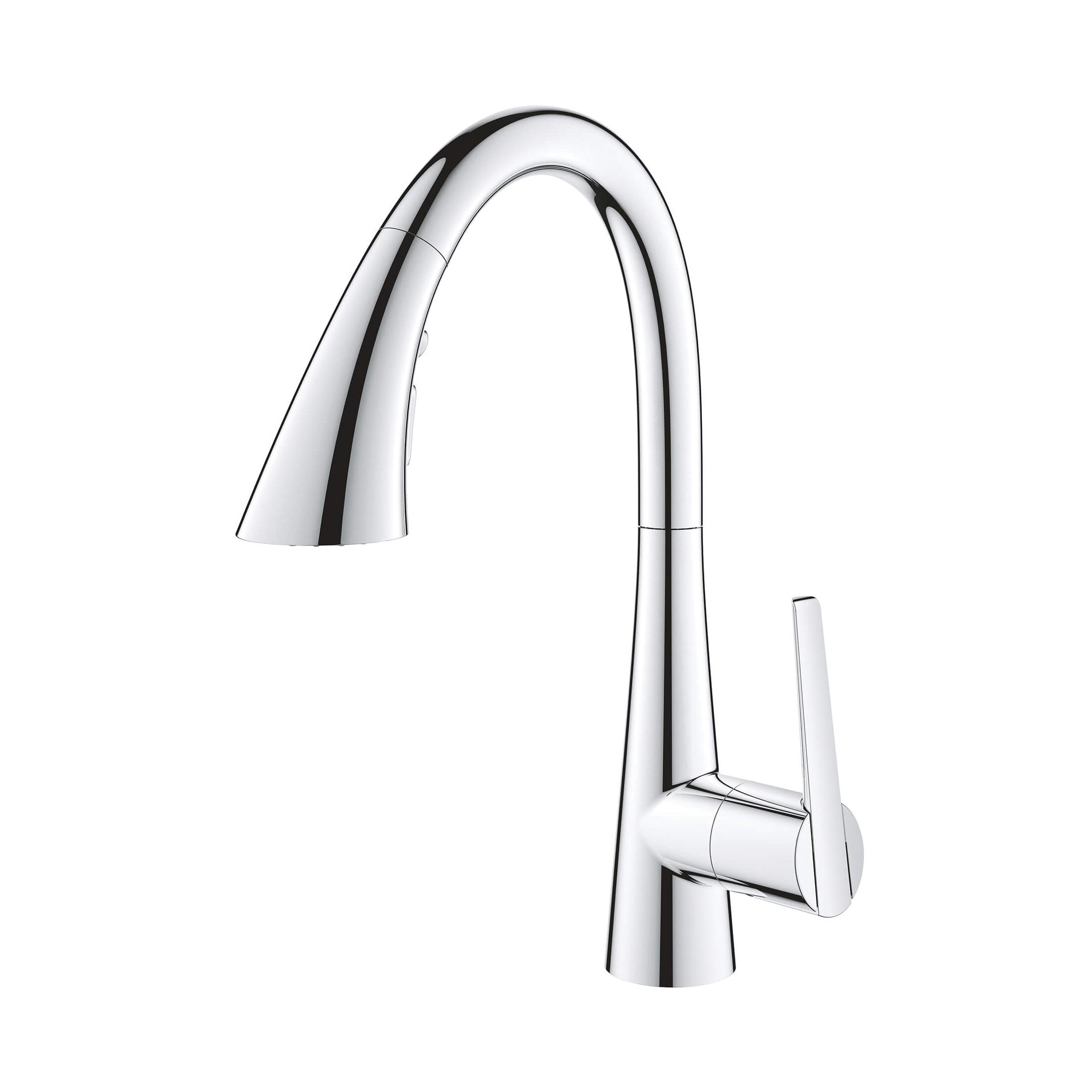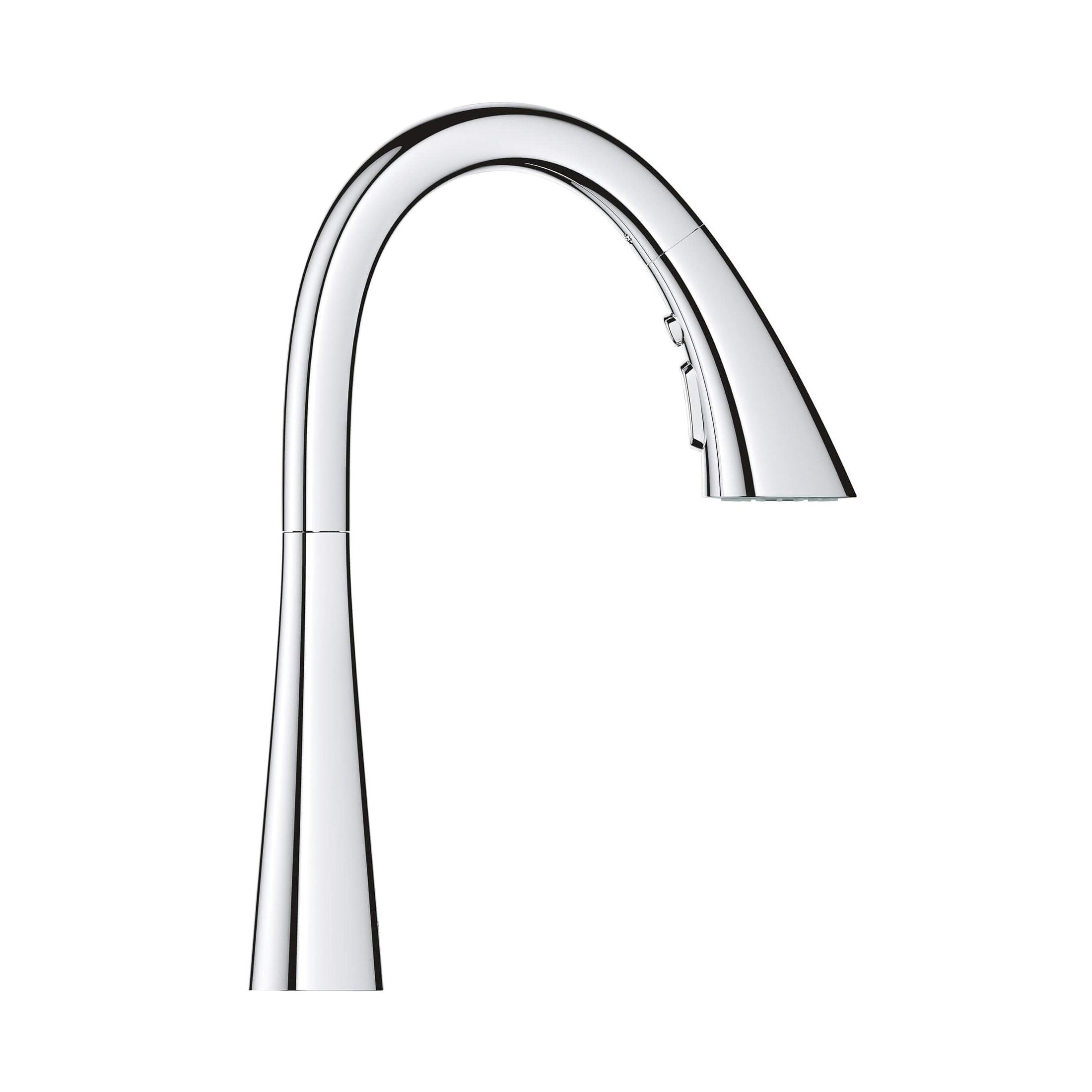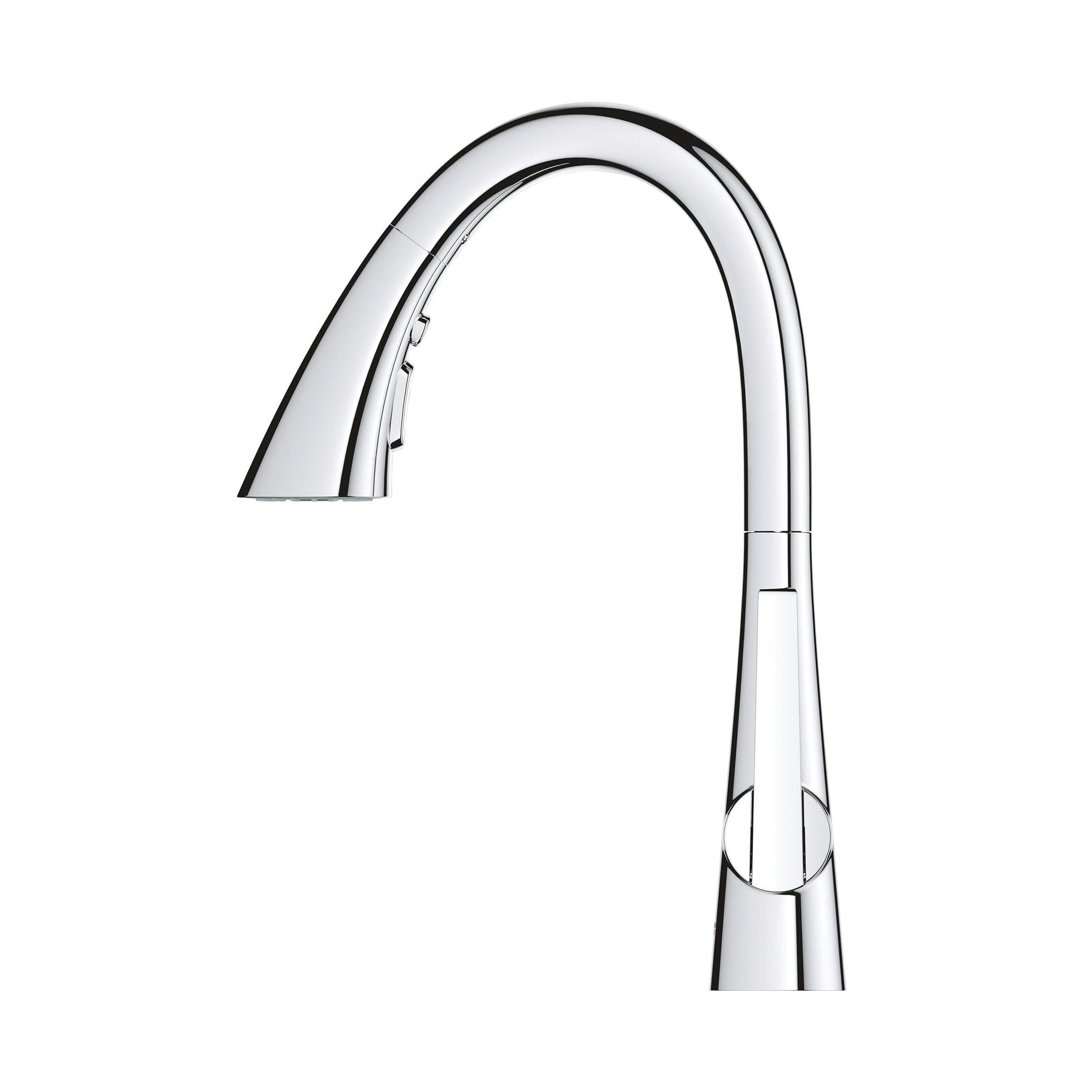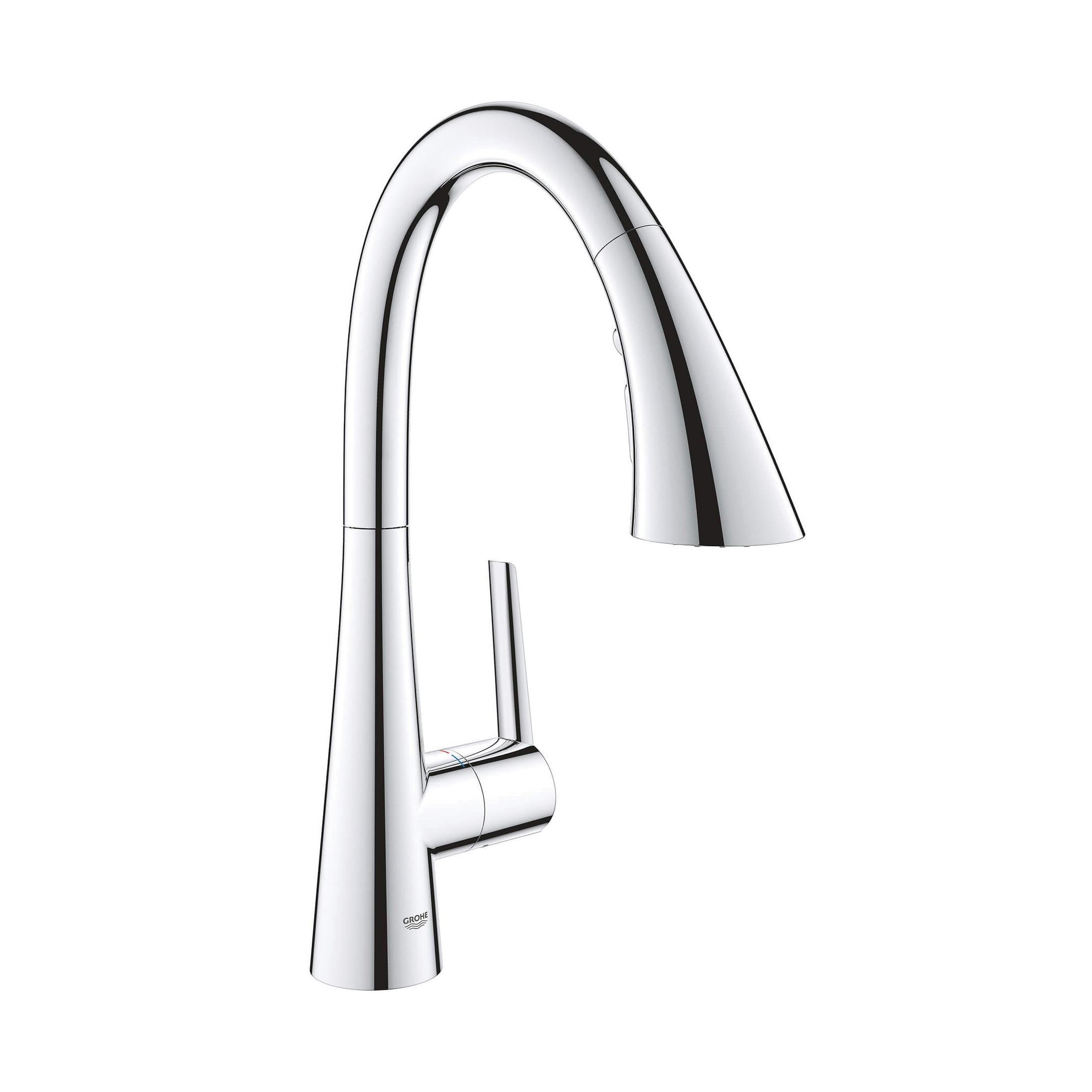 The GROHE Zedra Pull-Down Prep Sink Faucet with Triple-Function Spray Head is a single-handle faucet ideal for a secondary kitchen sink or bar sink in an entertaining area. This sleek, contemporary faucet features an ergonomic, pull-down spray head, distinctively flared for in-hand comfort when switching between three spray functions: regular stream for filling pots, shower spray for rinsing the sink or washing fruit, and a powerful blade spray to quickly clear food from plates. The Zedra single-hole bar/prep sink faucet is the perfect combination of style and substance. GROHE Zedra is the new name for Ladylux L2.