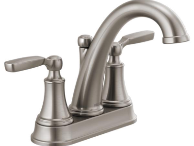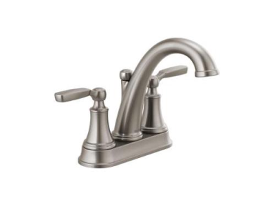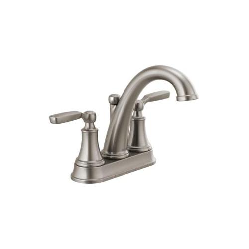 DELTA® Bathroom Faucet, Series: 2532LF, Woodhurst™, 1.2 gpm, 4 in Center Distance, Rigid Spout, 5-1/4 in Spout Reach, 5 in Spout Height, Lever, 2 Handles, Metal Pop-Up Drain, 3 Faucet Holes, 1/2-14, NPSM, 1-3/8 in Maximum Deck Thickness, Deck Mount, Washerless Stem Valve/Cartridge, 9-1/2 in W x 6-9/16 in H, Brass, Stainless, Import