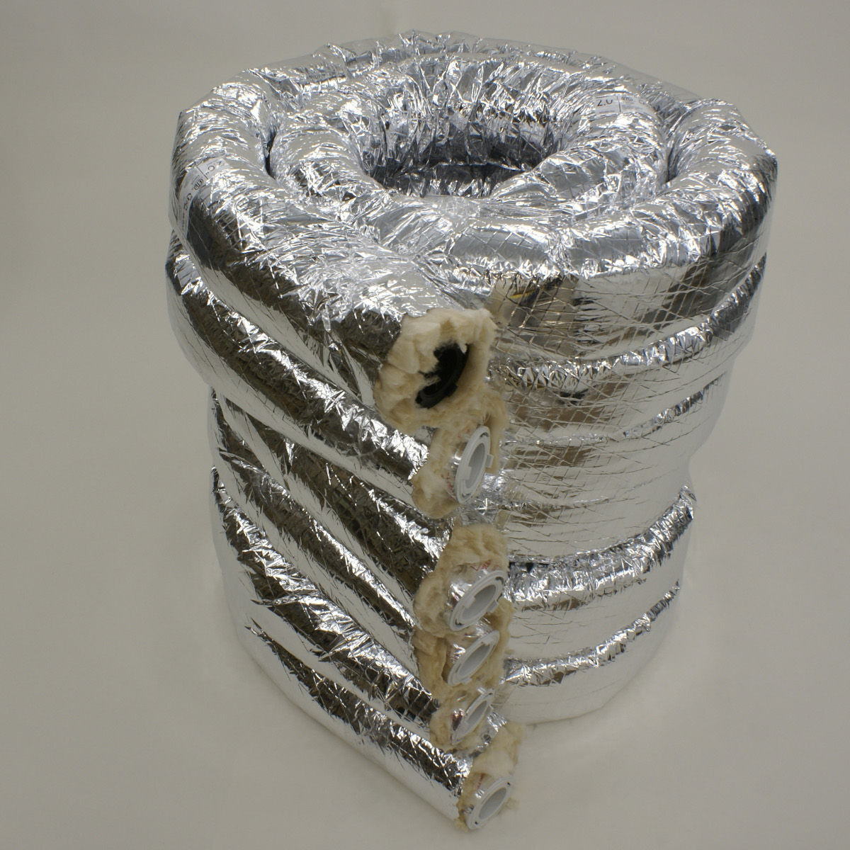 - The outer jacket for all is made of a two-ply reinforced reflective mylar; providing a vapor seal to prevent leakage and moisture migration and increases the insulation factor by reducing the radiant heat transfer