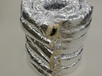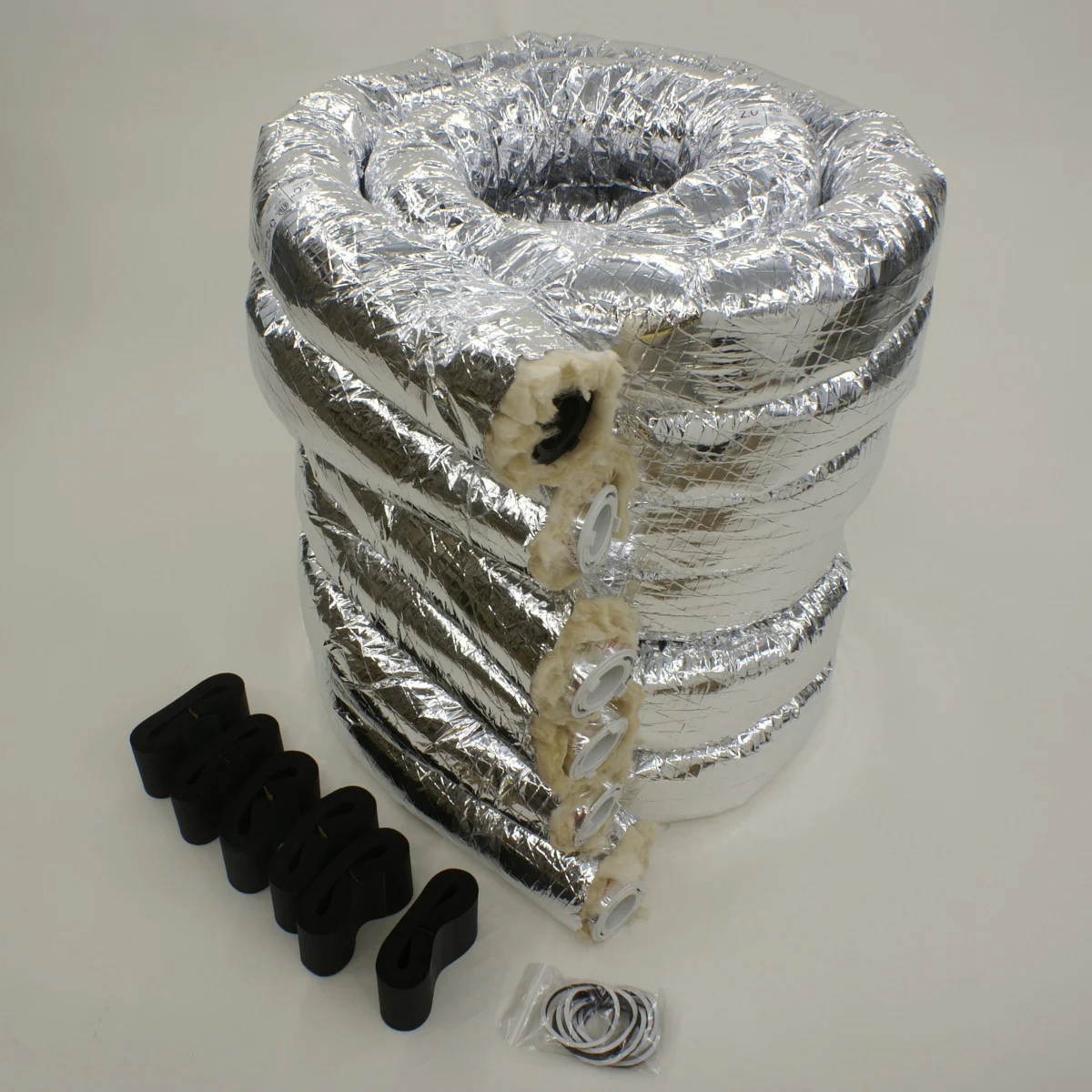 This is our sound attenuator flexible duct 2" inside diameter 5" outside diameter insulated to R6 with 2 vapor barriers. They come in a 12' lengths with our Twist-Fit connectors on each end.
