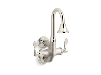 Kohler® Bathroom Sink Faucet, Contemporary Style, Series: 730T70-4AJR, Triton® Bowe™ Cannock™, 1.2 gpm, Gooseneck Spout, 3-11/16 in Spout Reach, 4-1/8 in Spout Height, Lever, 2 Handles, 1/2 in, External NPT, Spray Pattern: Rose, Function: Traditional, Vertical Wall Mount, Ceramic Disc Valve/Cartridge, 7-5/16 in L, Solid Brass, Vibrant® Bright Nickel, Commercial