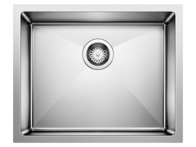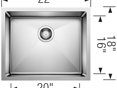 Blanco, 443145, Sink, Small Single, Series: QUATRUS R15, Square Shape, 20 in Bowl Width, 16 in Bowl Depth, 3-1/2 in Drain Opening, 1 Bowls, 9 in H x 21-15/16 in W x 17-15/16 in D Overall, Undermount Mounting, Stainless Steel, Satin, Import