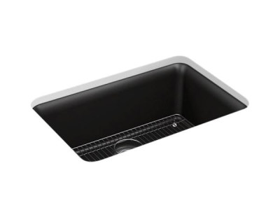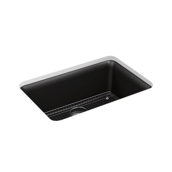 Kohler®, 28000-CM7, Kitchen Sink, Traditional, Series: 28000, Cairn® Collection, Rectangular Shape, 25-9/16 in Bowl Length, 16-3/8 in Bowl Width, 9-1/2 in Bowl Depth, 3-7/8 in Drain Opening, 1 Bowls, 27-1/2 in L x 18-5/16 in W x 10-3/16 in H Overall, Undermount Mounting, Neoroc® Composite, Matte Graphite
